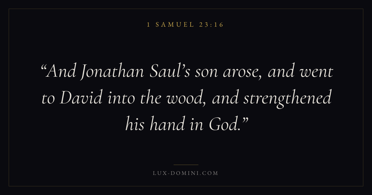And Jonathan Saul’s son arose, and went to David into the wood, and strengthened his hand in God.