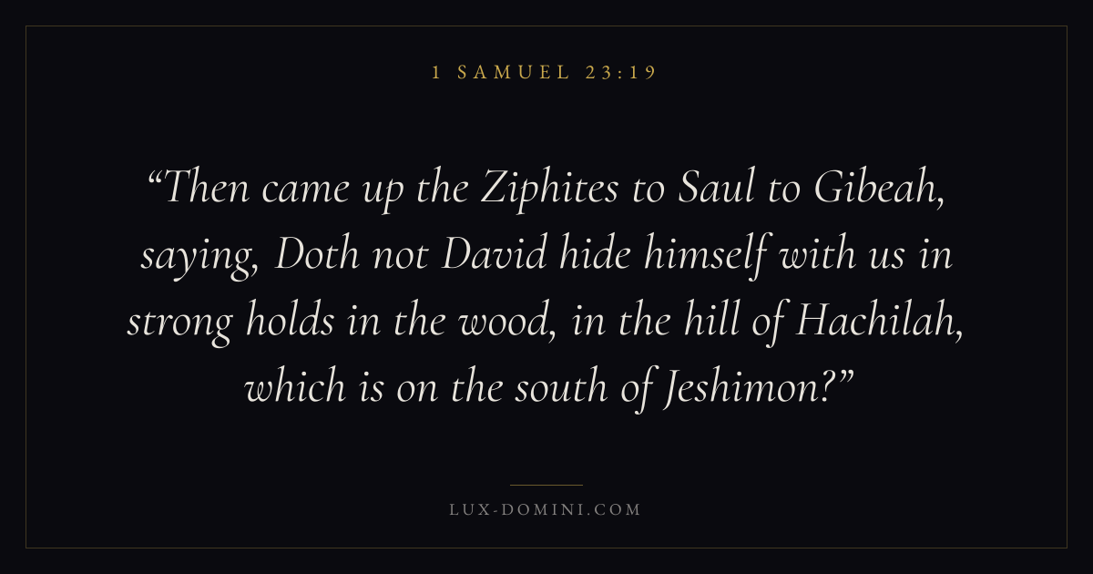 Then came up the Ziphites to Saul to Gibeah, saying, Doth not David hide himself with us in strong holds in the wood, in the hill of Hachilah, which is on the south of Jeshimon?