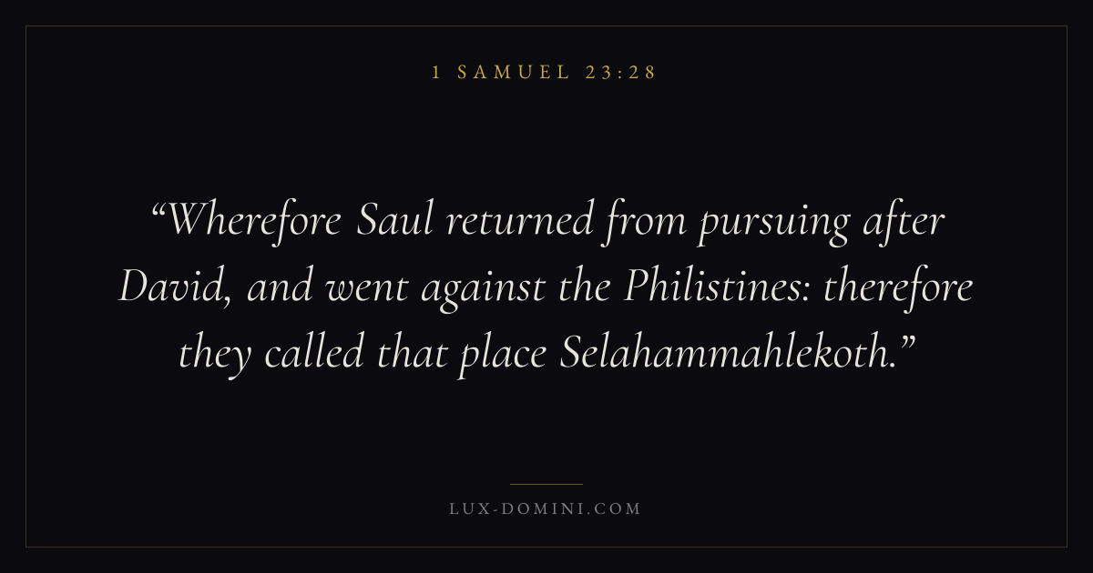Wherefore Saul returned from pursuing after David, and went against the Philistines: therefore they called that place Selahammahlekoth.