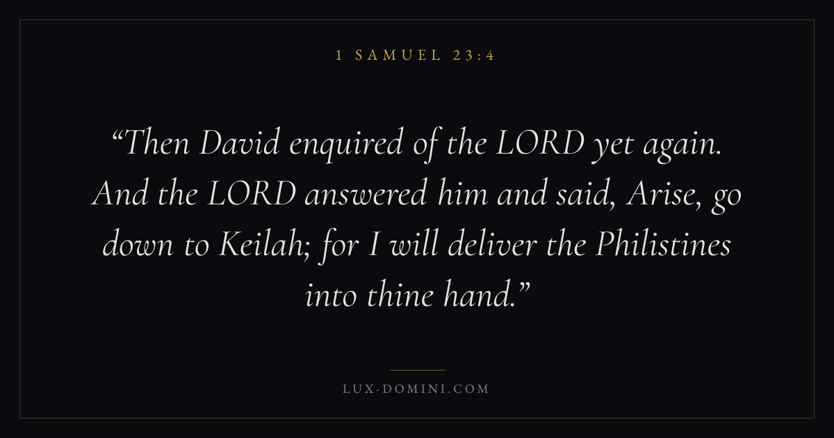 Then David enquired of the LORD yet again. And the LORD answered him and said, Arise, go down to Keilah; for I will deliver the Philistines into thine hand.
