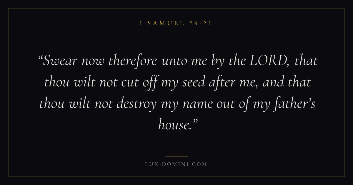 Swear now therefore unto me by the LORD, that thou wilt not cut off my seed after me, and that thou wilt not destroy my name out of my father’s house.