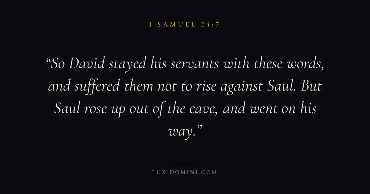 So David stayed his servants with these words, and suffered them not to rise against Saul. But Saul rose up out of the cave, and went on his way.