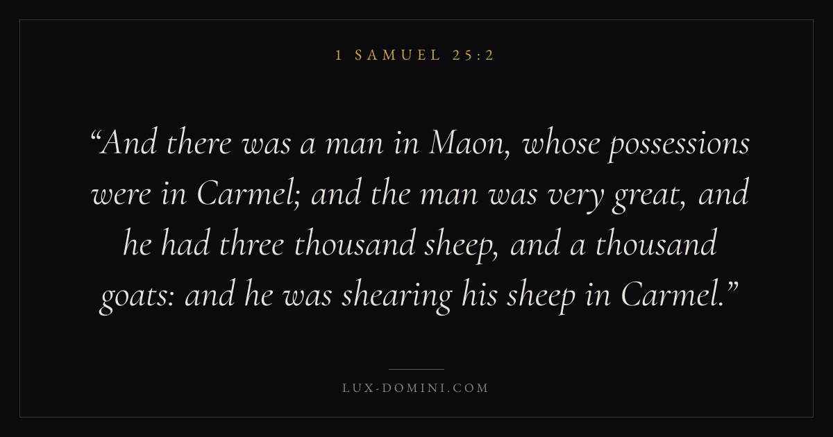 And there was a man in Maon, whose possessions were in Carmel; and the man was very great, and he had three thousand sheep, and a thousand goats: and he was shearing his sheep in Carmel.