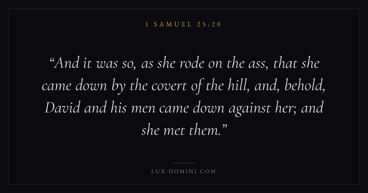 And it was so, as she rode on the ass, that she came down by the covert of the hill, and, behold, David and his men came down against her; and she met them.