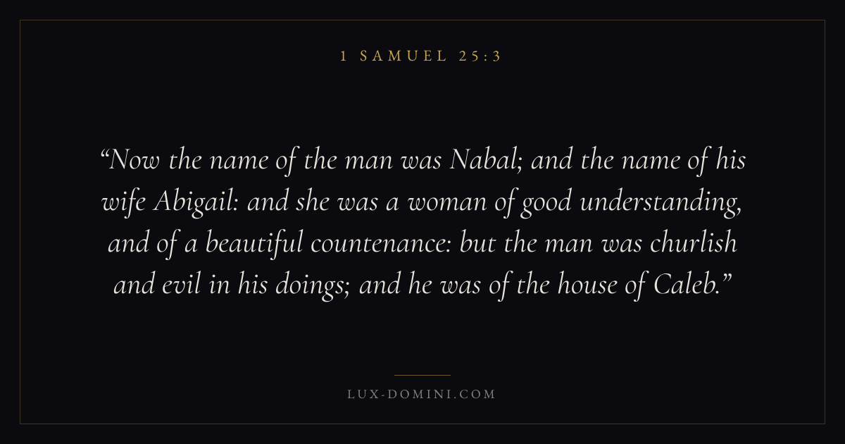 Now the name of the man was Nabal; and the name of his wife Abigail: and she was a woman of good understanding, and of a beautiful countenance: but the man was churlish and evil in his doings; and he was of the house of Caleb.