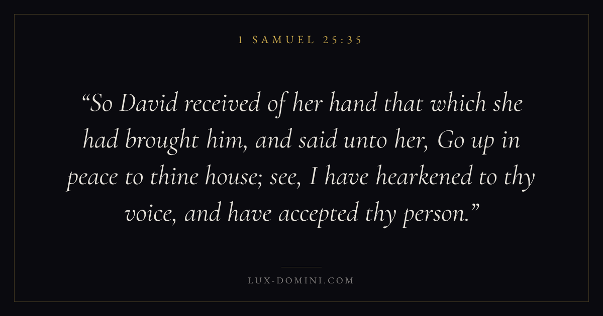 So David received of her hand that which she had brought him, and said unto her, Go up in peace to thine house; see, I have hearkened to thy voice, and have accepted thy person.