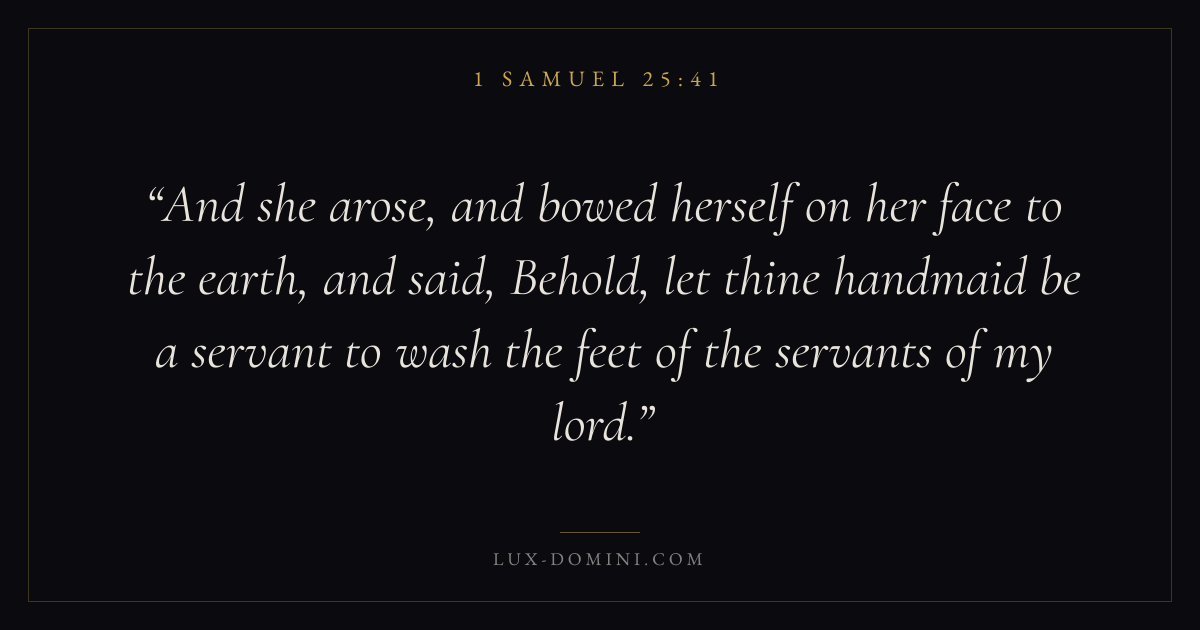 And she arose, and bowed herself on her face to the earth, and said, Behold, let thine handmaid be a servant to wash the feet of the servants of my lord.