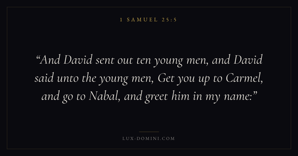 And David sent out ten young men, and David said unto the young men, Get you up to Carmel, and go to Nabal, and greet him in my name: