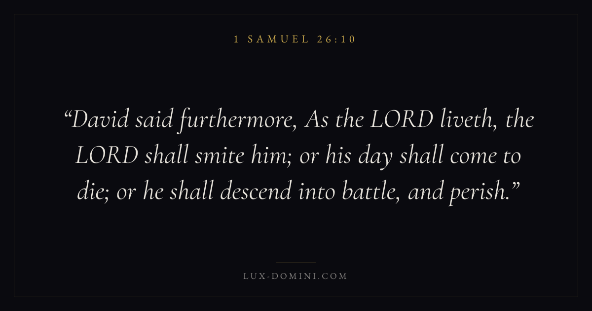 David said furthermore, As the LORD liveth, the LORD shall smite him; or his day shall come to die; or he shall descend into battle, and perish.