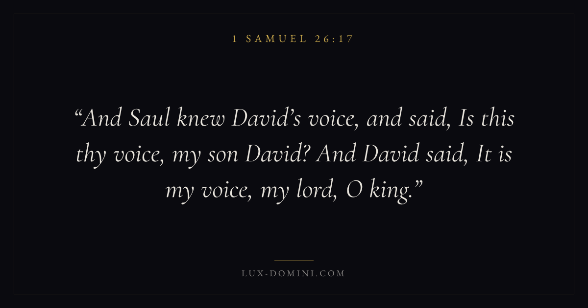 And Saul knew David’s voice, and said, Is this thy voice, my son David? And David said, It is my voice, my lord, O king.