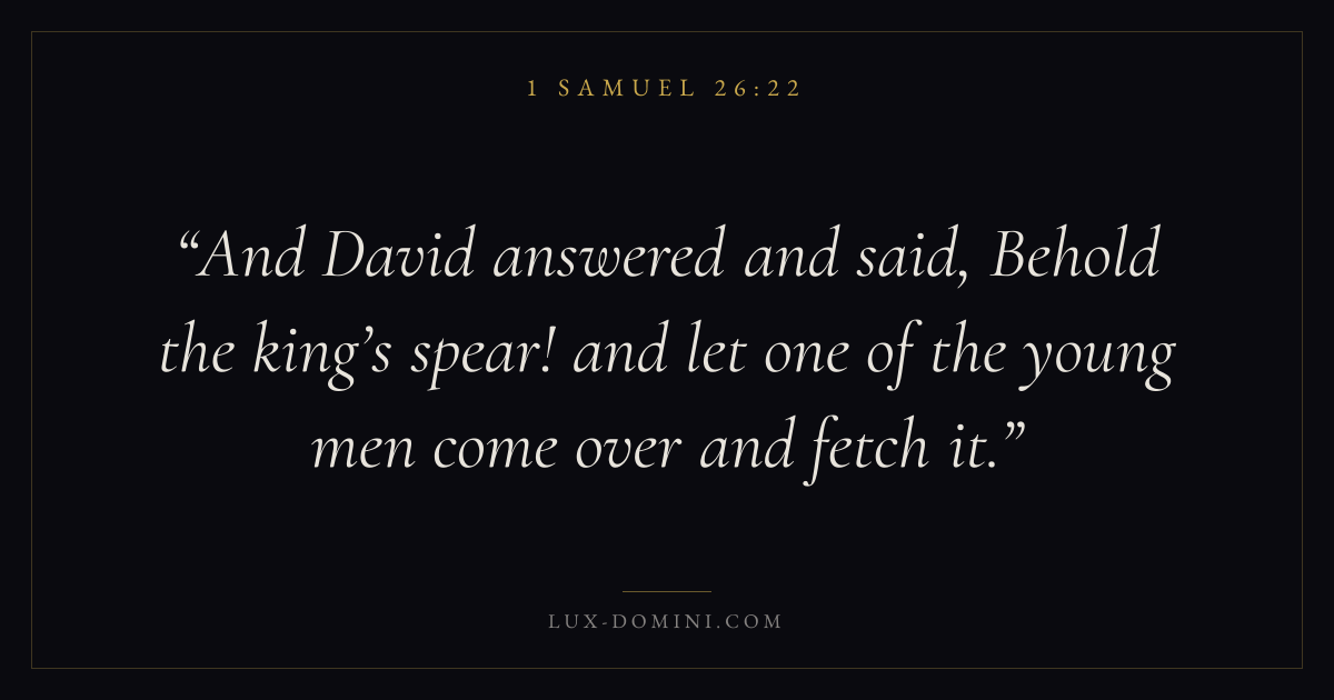 And David answered and said, Behold the king’s spear! and let one of the young men come over and fetch it.