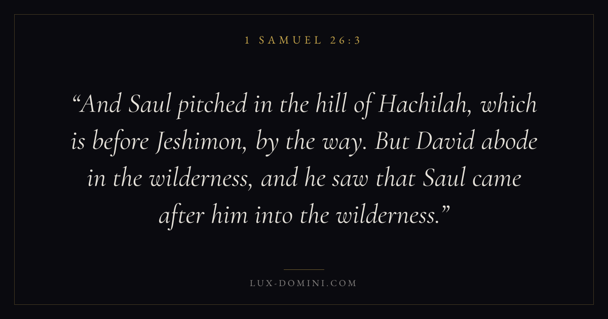 And Saul pitched in the hill of Hachilah, which is before Jeshimon, by the way. But David abode in the wilderness, and he saw that Saul came after him into the wilderness.
