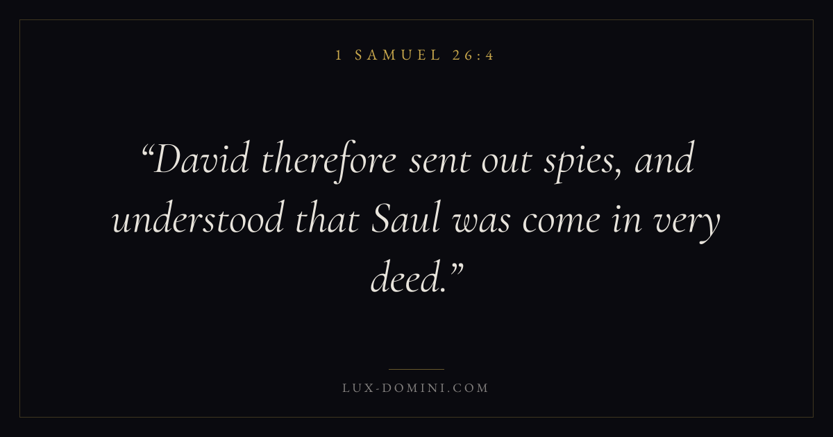 David therefore sent out spies, and understood that Saul was come in very deed.