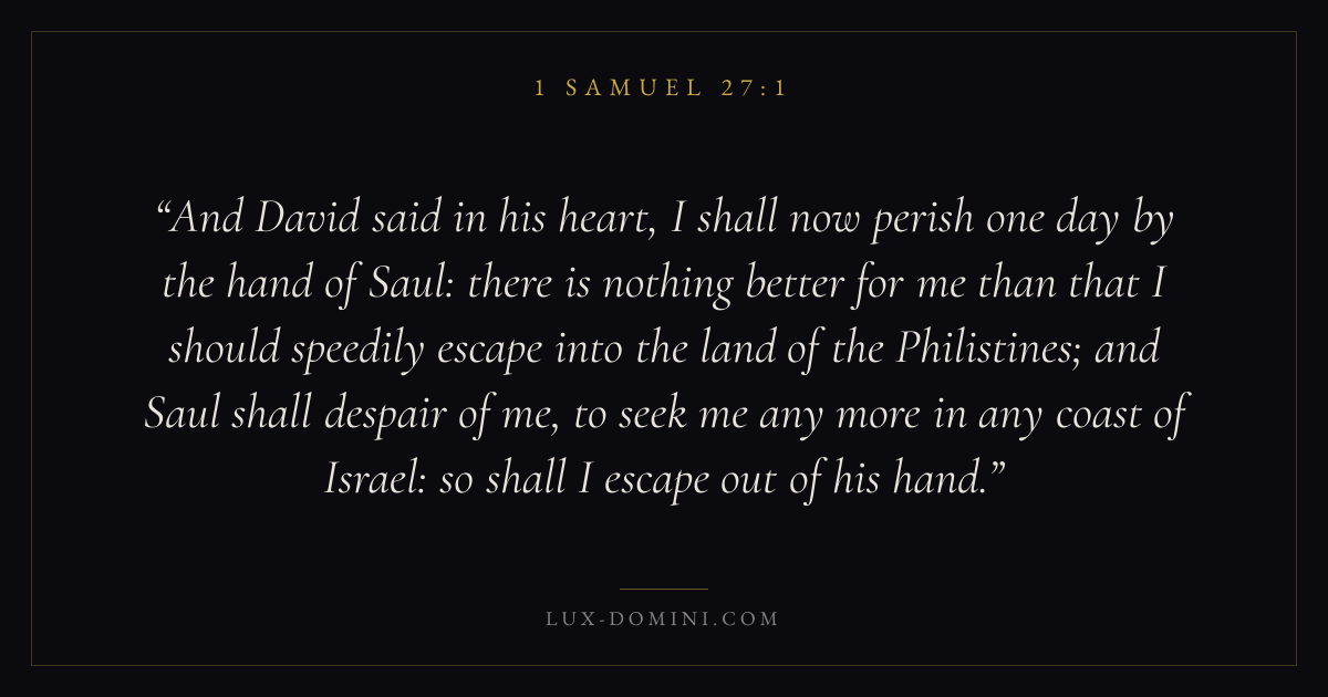 And David said in his heart, I shall now perish one day by the hand of Saul: there is nothing better for me than that I should speedily escape into the land of the Philistines; and Saul shall despair of me, to seek me any more in any coast of Israel: so shall I escape out of his hand.