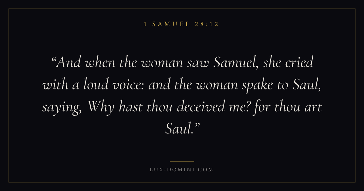 And when the woman saw Samuel, she cried with a loud voice: and the woman spake to Saul, saying, Why hast thou deceived me? for thou art Saul.