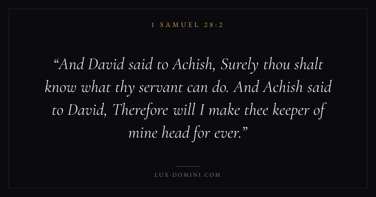 And David said to Achish, Surely thou shalt know what thy servant can do. And Achish said to David, Therefore will I make thee keeper of mine head for ever.