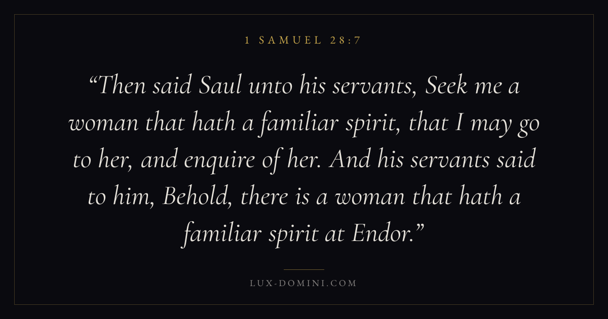 Then said Saul unto his servants, Seek me a woman that hath a familiar spirit, that I may go to her, and enquire of her. And his servants said to him, Behold, there is a woman that hath a familiar spirit at Endor.