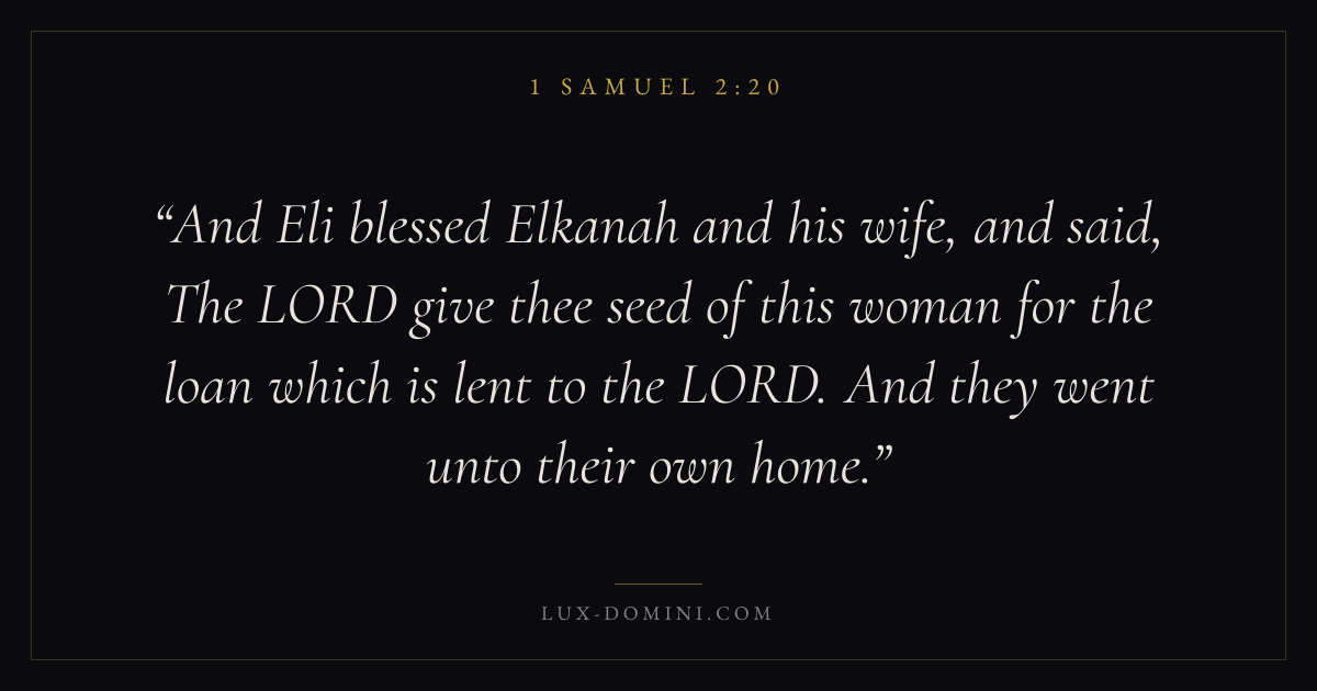 And Eli blessed Elkanah and his wife, and said, The LORD give thee seed of this woman for the loan which is lent to the LORD. And they went unto their own home.