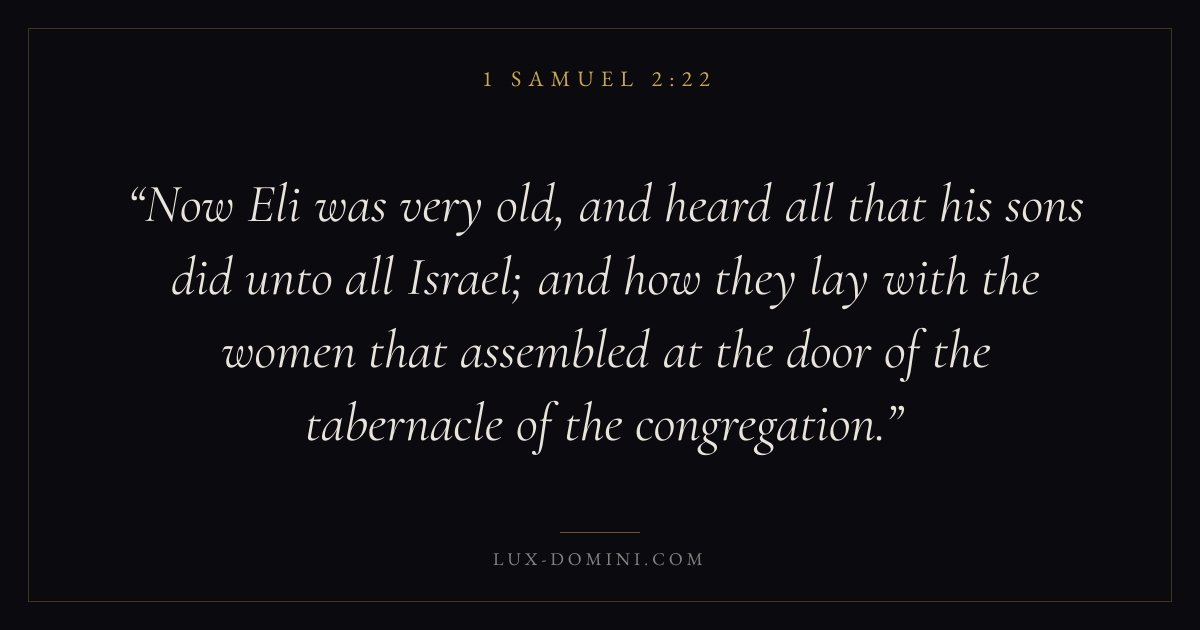 Now Eli was very old, and heard all that his sons did unto all Israel; and how they lay with the women that assembled at the door of the tabernacle of the congregation.