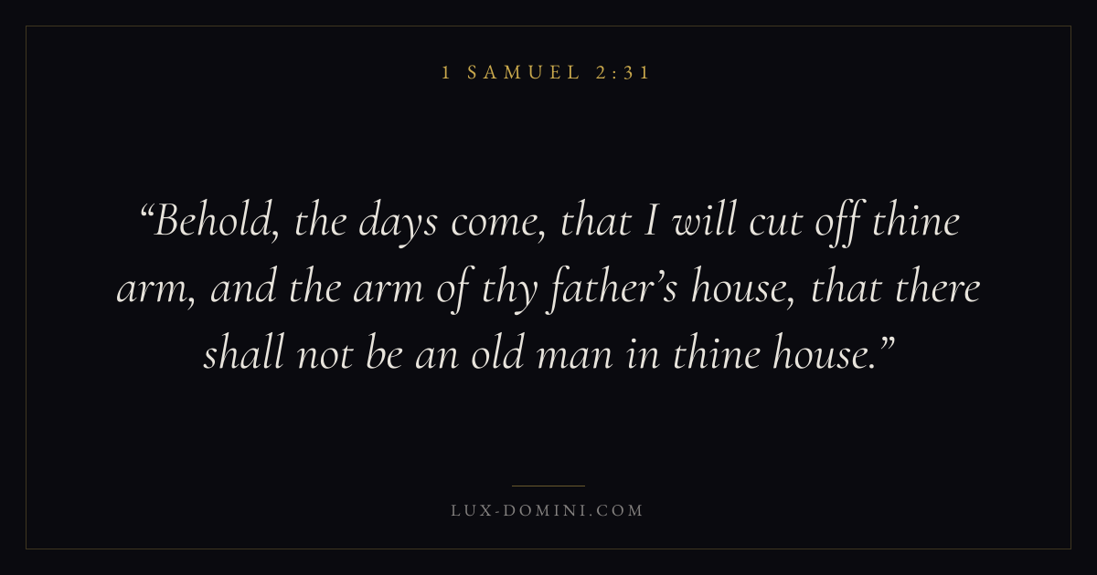 Behold, the days come, that I will cut off thine arm, and the arm of thy father’s house, that there shall not be an old man in thine house.