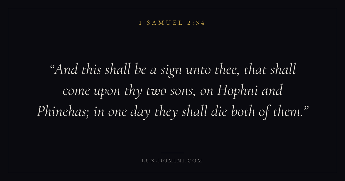 And this shall be a sign unto thee, that shall come upon thy two sons, on Hophni and Phinehas; in one day they shall die both of them.