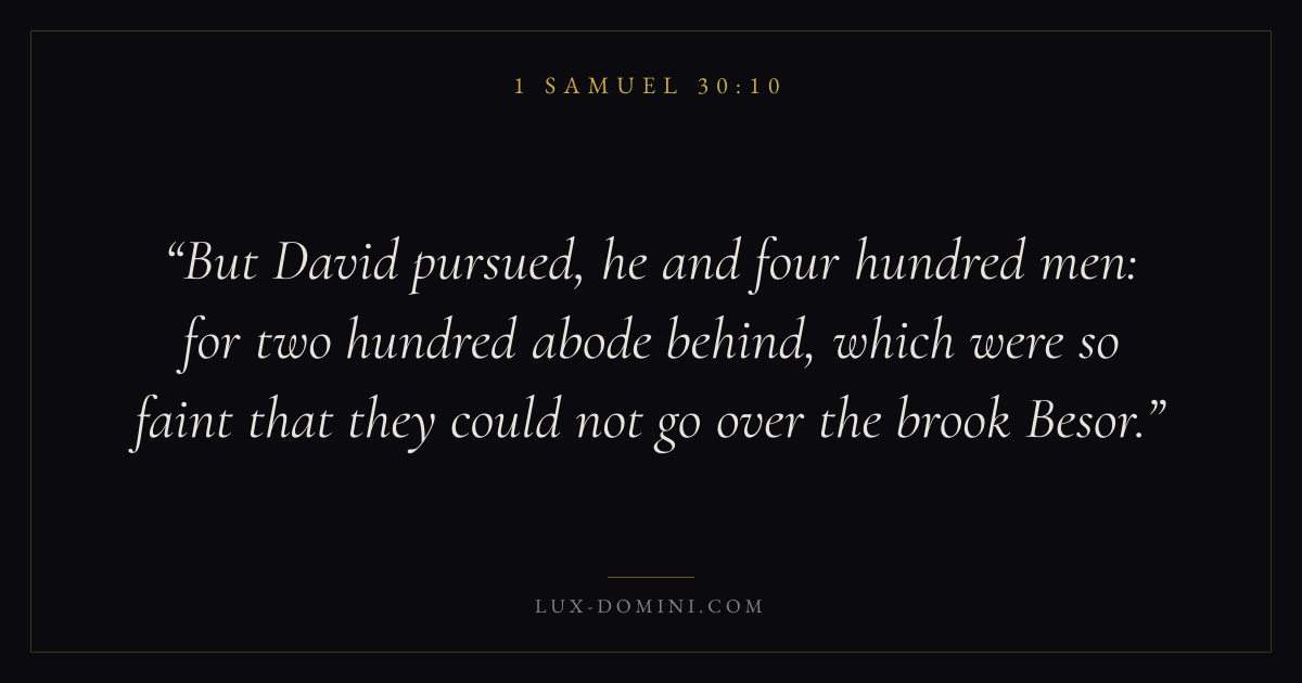 But David pursued, he and four hundred men: for two hundred abode behind, which were so faint that they could not go over the brook Besor.