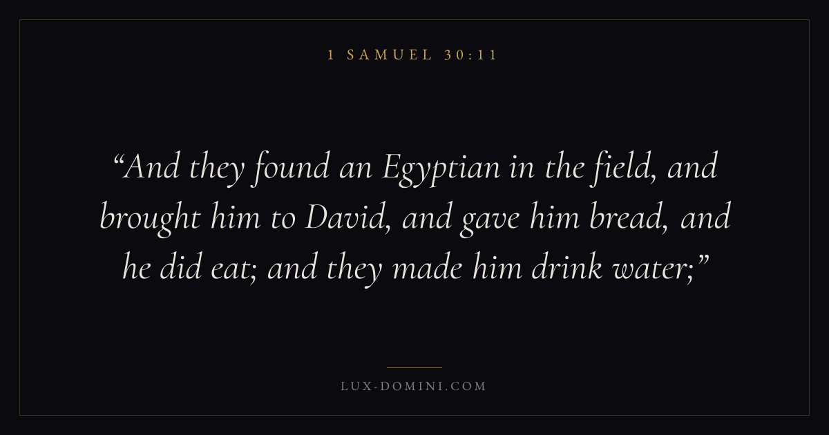 And they found an Egyptian in the field, and brought him to David, and gave him bread, and he did eat; and they made him drink water;