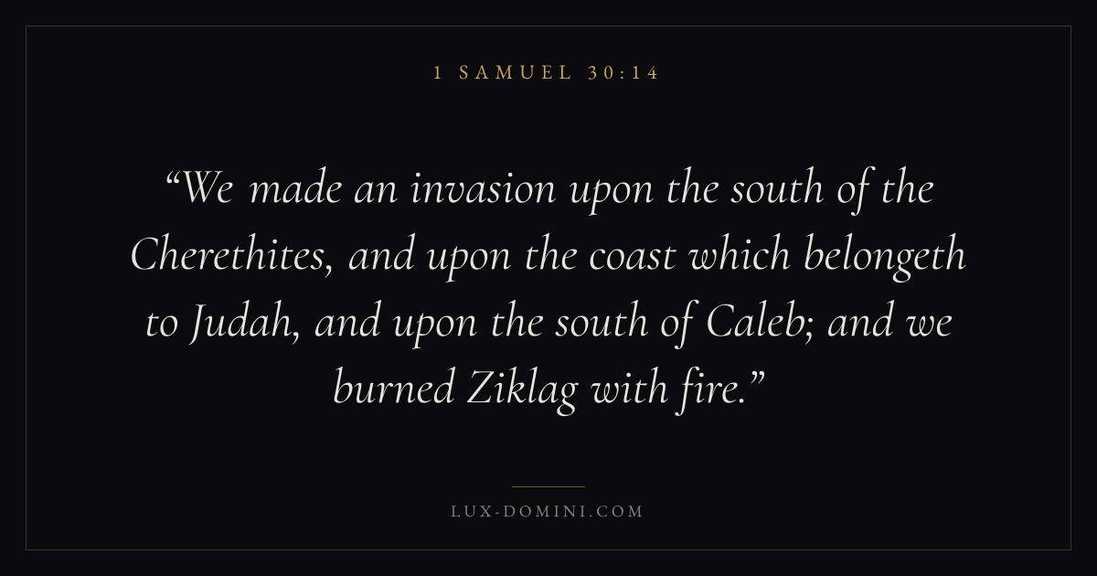 We made an invasion upon the south of the Cherethites, and upon the coast which belongeth to Judah, and upon the south of Caleb; and we burned Ziklag with fire.