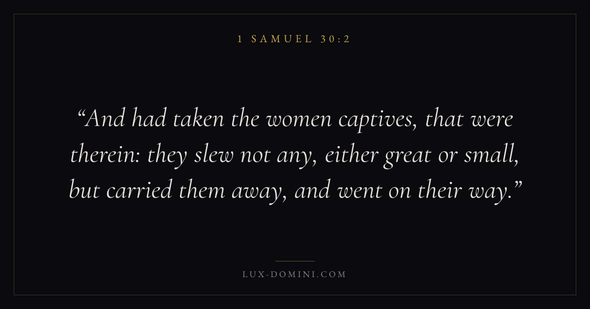 And had taken the women captives, that were therein: they slew not any, either great or small, but carried them away, and went on their way.
