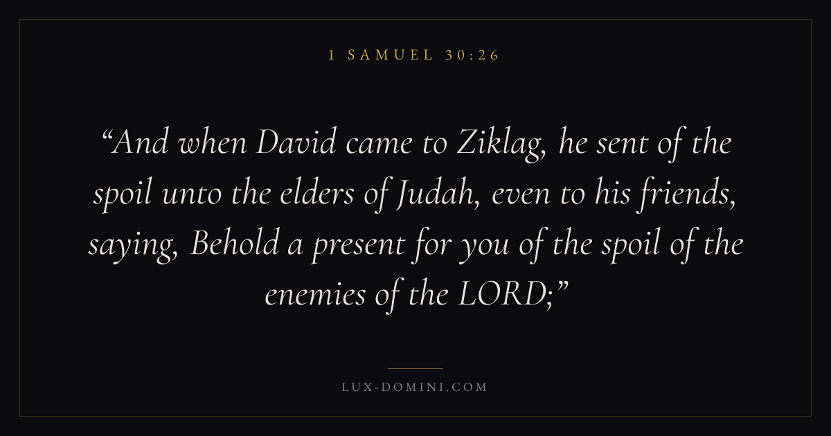 And when David came to Ziklag, he sent of the spoil unto the elders of Judah, even to his friends, saying, Behold a present for you of the spoil of the enemies of the LORD;