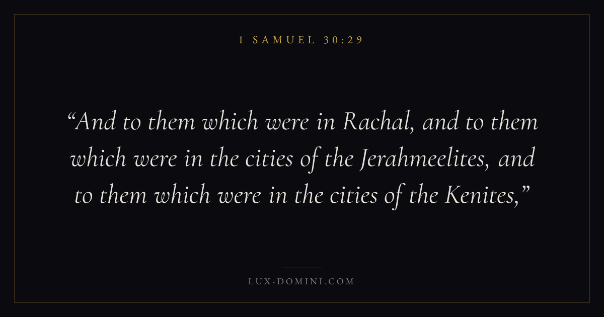 And to them which were in Rachal, and to them which were in the cities of the Jerahmeelites, and to them which were in the cities of the Kenites,