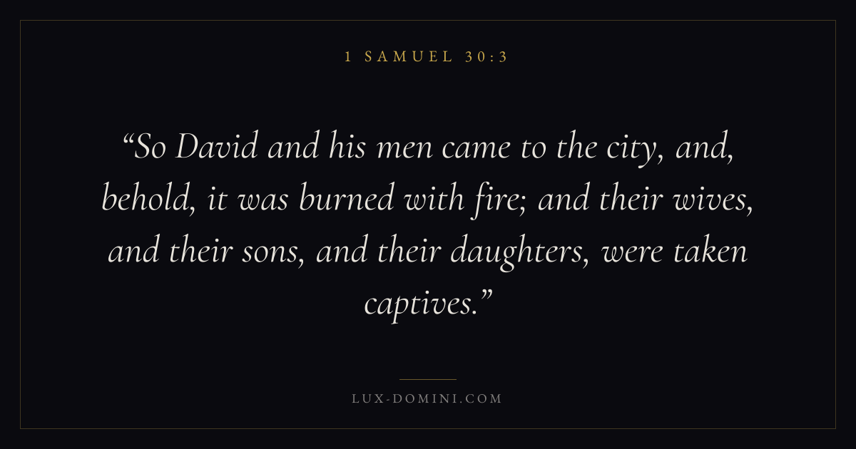 So David and his men came to the city, and, behold, it was burned with fire; and their wives, and their sons, and their daughters, were taken captives.