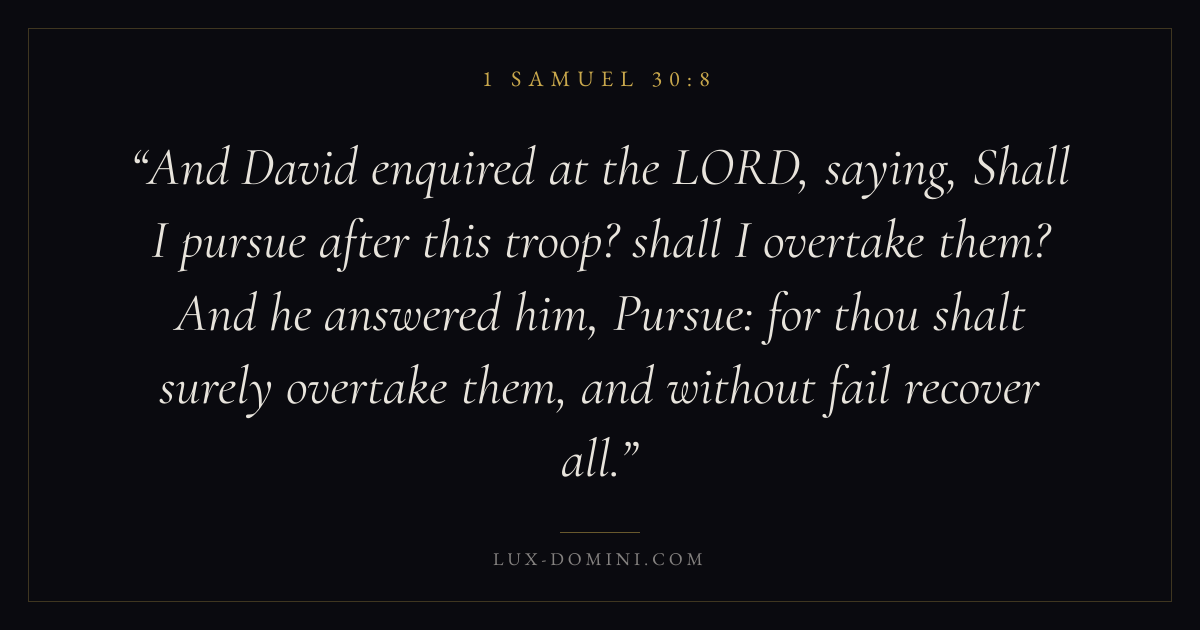 And David enquired at the LORD, saying, Shall I pursue after this troop? shall I overtake them? And he answered him, Pursue: for thou shalt surely overtake them, and without fail recover all.