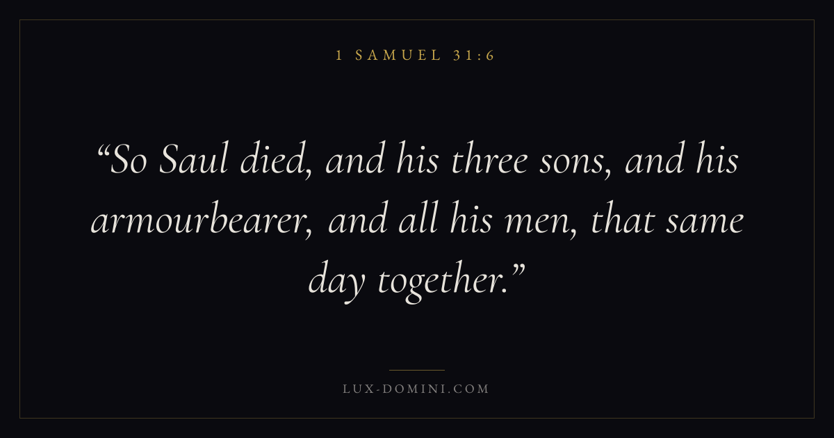 So Saul died, and his three sons, and his armourbearer, and all his men, that same day together.