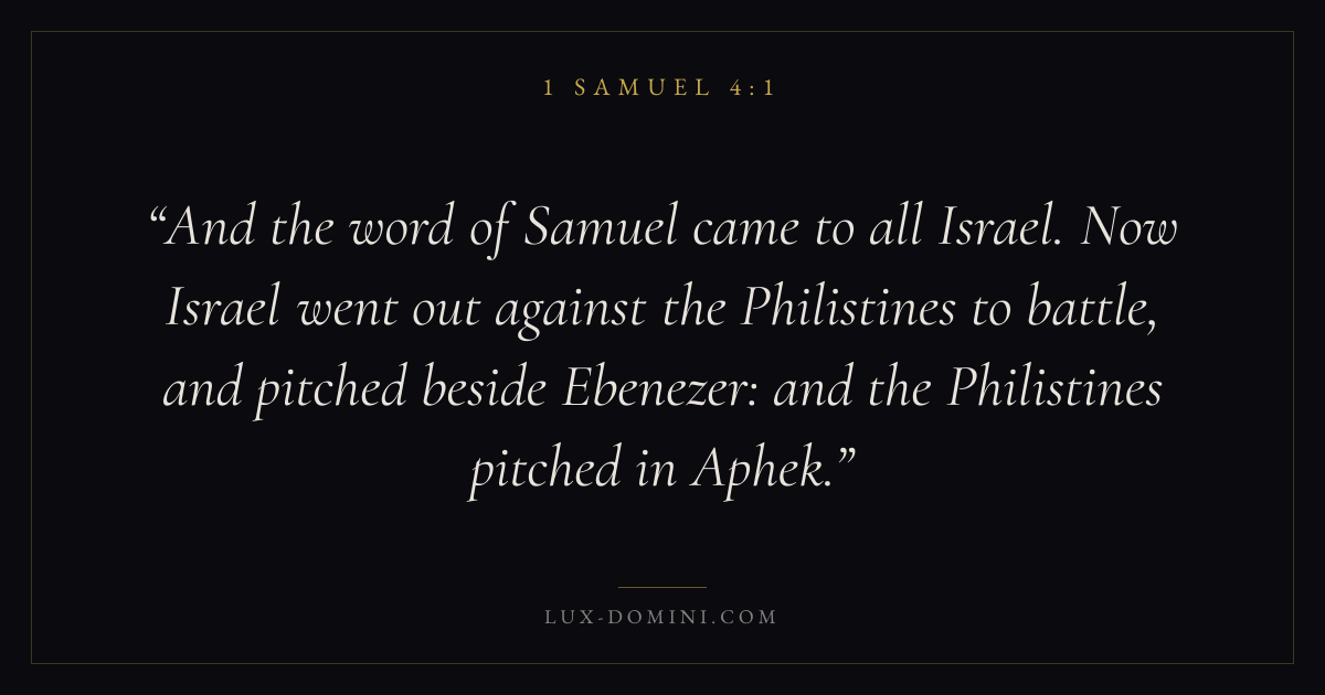 And the word of Samuel came to all Israel. Now Israel went out against the Philistines to battle, and pitched beside Ebenezer: and the Philistines pitched in Aphek.