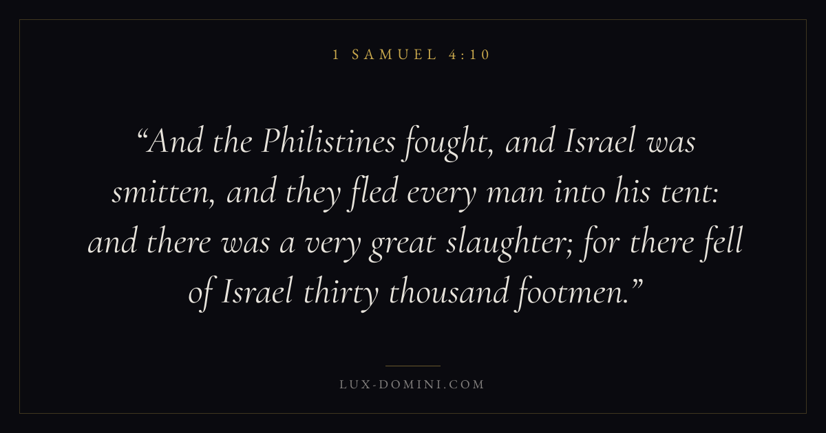 And the Philistines fought, and Israel was smitten, and they fled every man into his tent: and there was a very great slaughter; for there fell of Israel thirty thousand footmen.