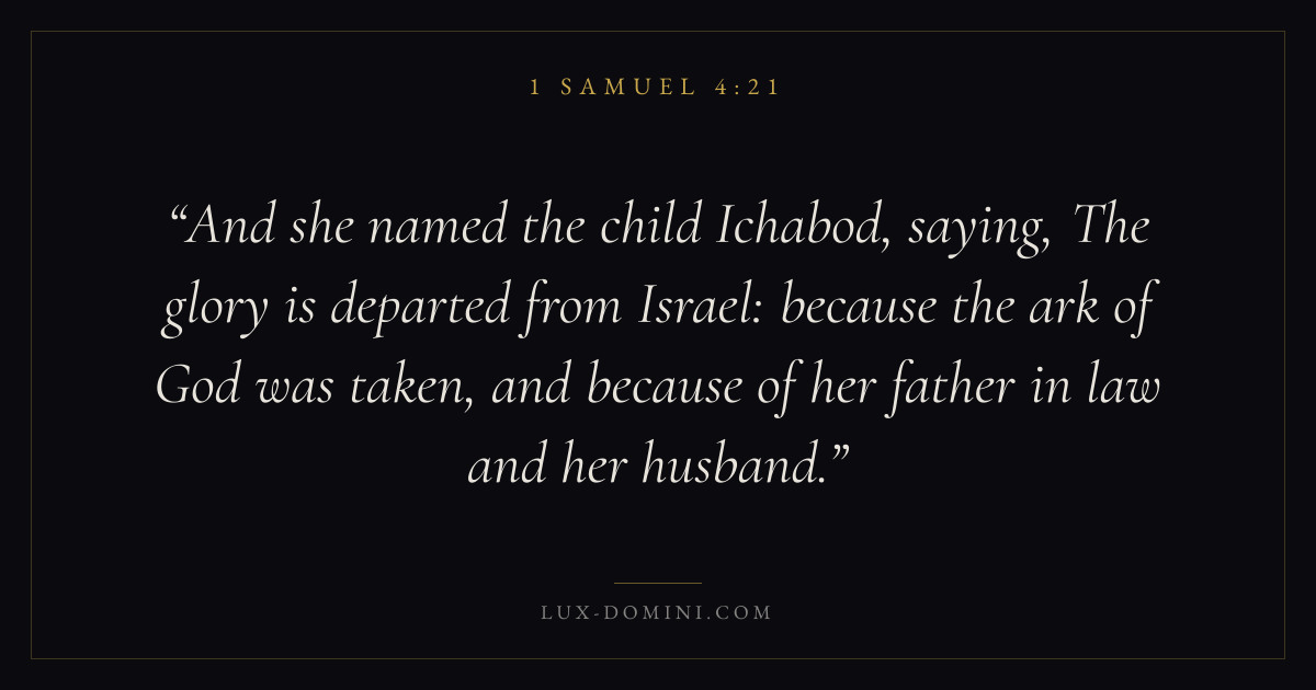 And she named the child Ichabod, saying, The glory is departed from Israel: because the ark of God was taken, and because of her father in law and her husband.