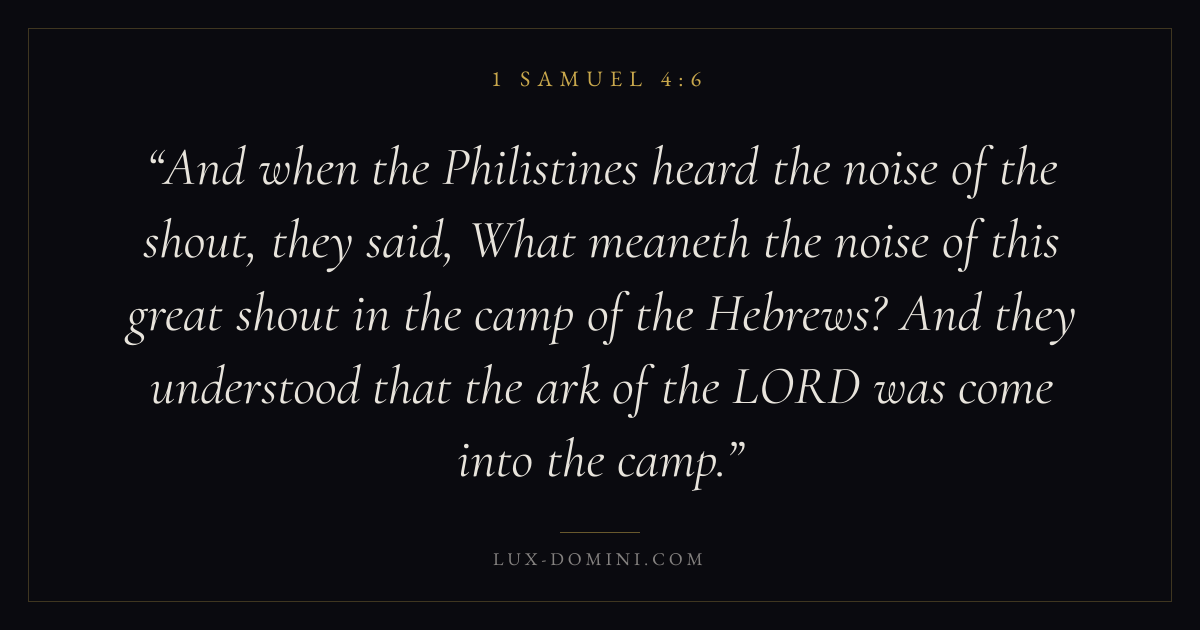 And when the Philistines heard the noise of the shout, they said, What meaneth the noise of this great shout in the camp of the Hebrews? And they understood that the ark of the LORD was come into the camp.