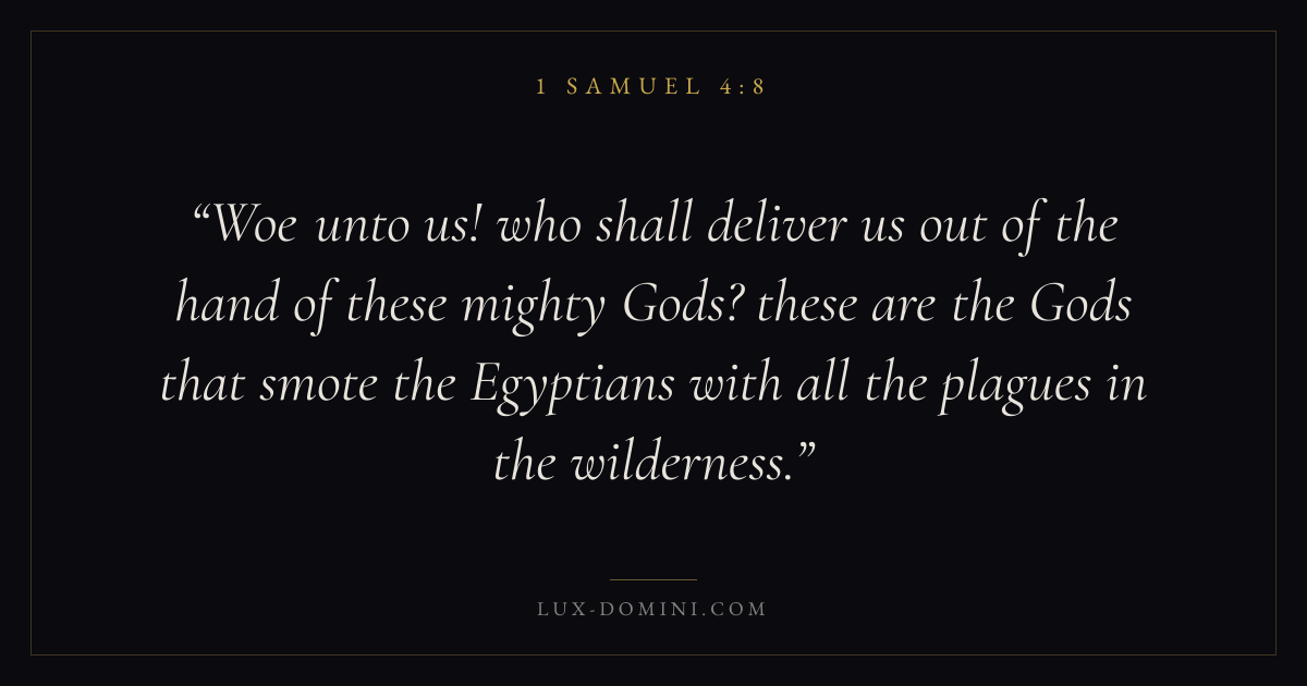 Woe unto us! who shall deliver us out of the hand of these mighty Gods? these are the Gods that smote the Egyptians with all the plagues in the wilderness.