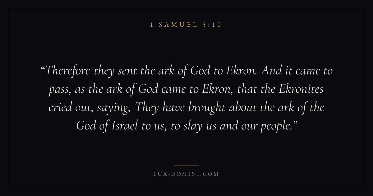 Therefore they sent the ark of God to Ekron. And it came to pass, as the ark of God came to Ekron, that the Ekronites cried out, saying, They have brought about the ark of the God of Israel to us, to slay us and our people.