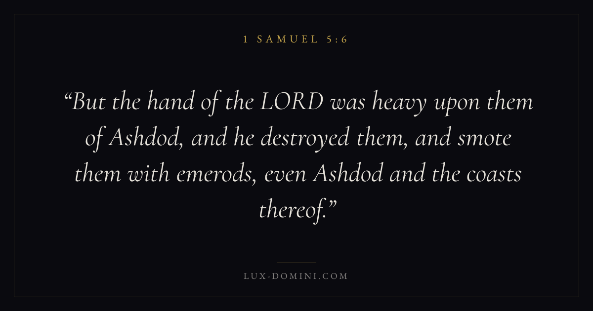 But the hand of the LORD was heavy upon them of Ashdod, and he destroyed them, and smote them with emerods, even Ashdod and the coasts thereof.