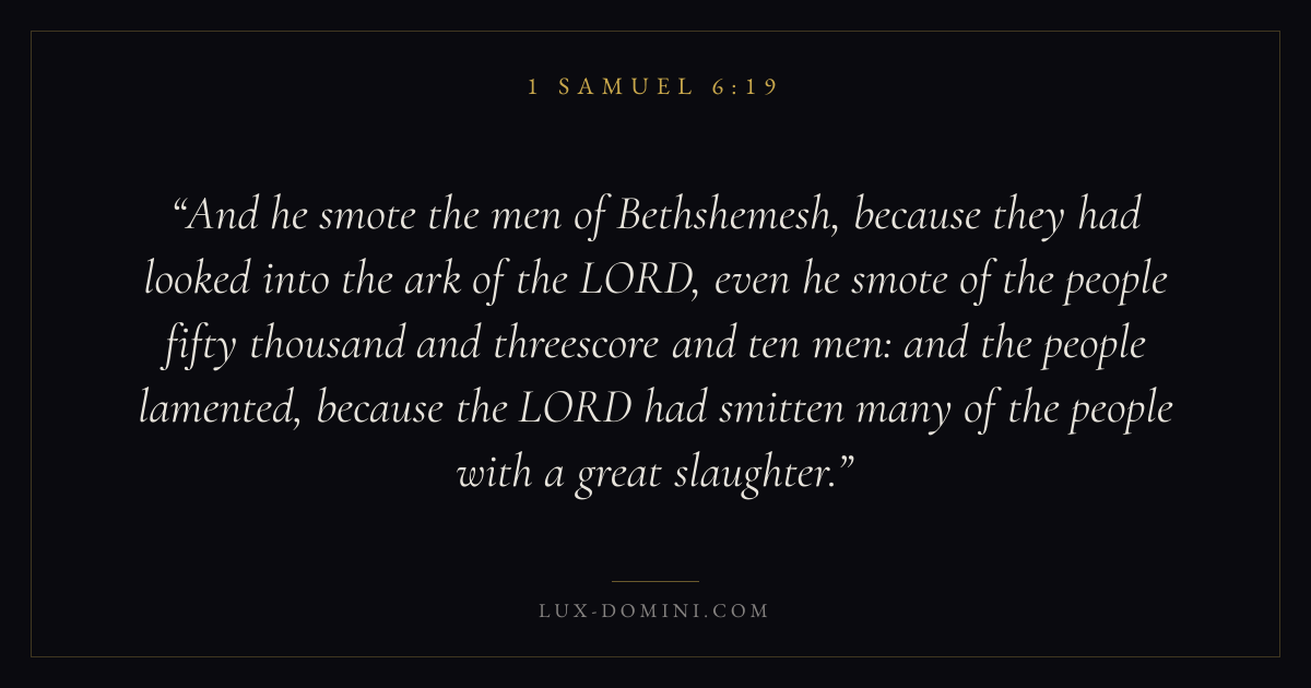 And he smote the men of Bethshemesh, because they had looked into the ark of the LORD, even he smote of the people fifty thousand and threescore and ten men: and the people lamented, because the LORD had smitten many of the people with a great slaughter.