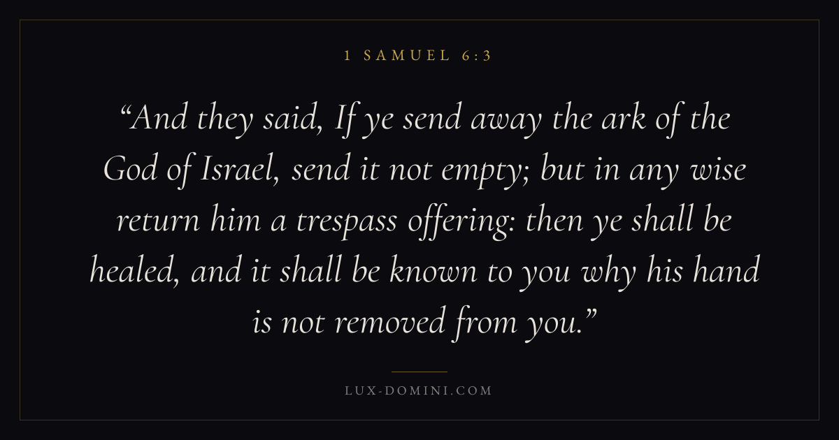 And they said, If ye send away the ark of the God of Israel, send it not empty; but in any wise return him a trespass offering: then ye shall be healed, and it shall be known to you why his hand is not removed from you.