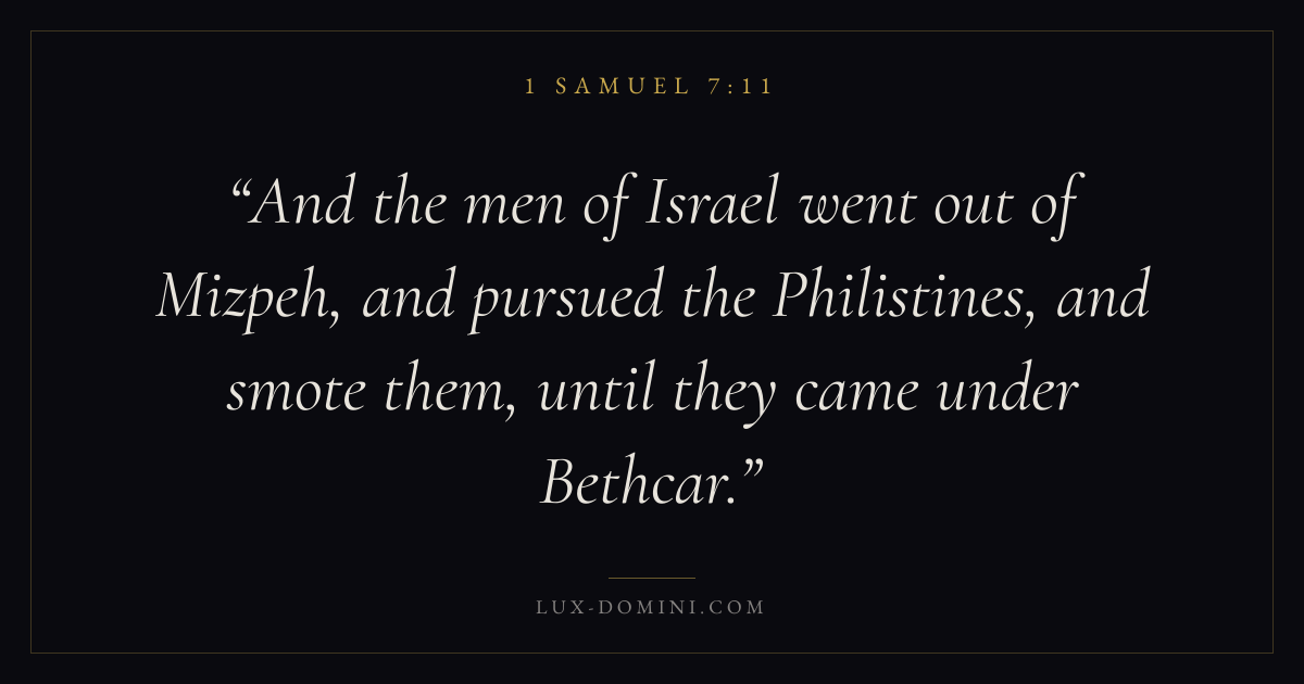 And the men of Israel went out of Mizpeh, and pursued the Philistines, and smote them, until they came under Bethcar.