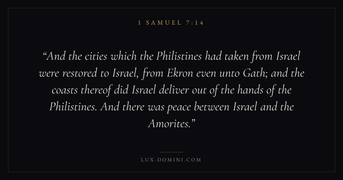 And the cities which the Philistines had taken from Israel were restored to Israel, from Ekron even unto Gath; and the coasts thereof did Israel deliver out of the hands of the Philistines. And there was peace between Israel and the Amorites.