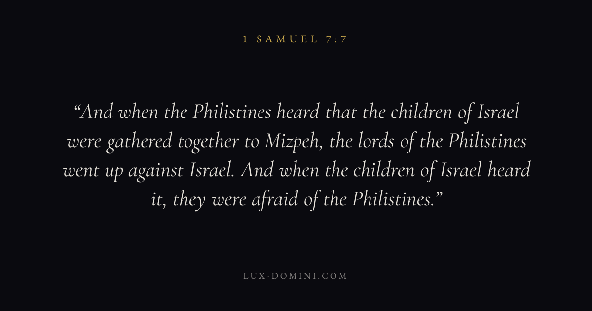 And when the Philistines heard that the children of Israel were gathered together to Mizpeh, the lords of the Philistines went up against Israel. And when the children of Israel heard it, they were afraid of the Philistines.