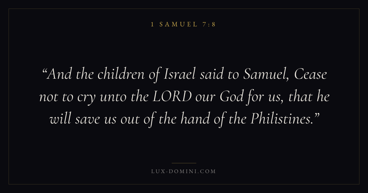 And the children of Israel said to Samuel, Cease not to cry unto the LORD our God for us, that he will save us out of the hand of the Philistines.