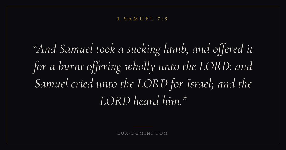 And Samuel took a sucking lamb, and offered it for a burnt offering wholly unto the LORD: and Samuel cried unto the LORD for Israel; and the LORD heard him.