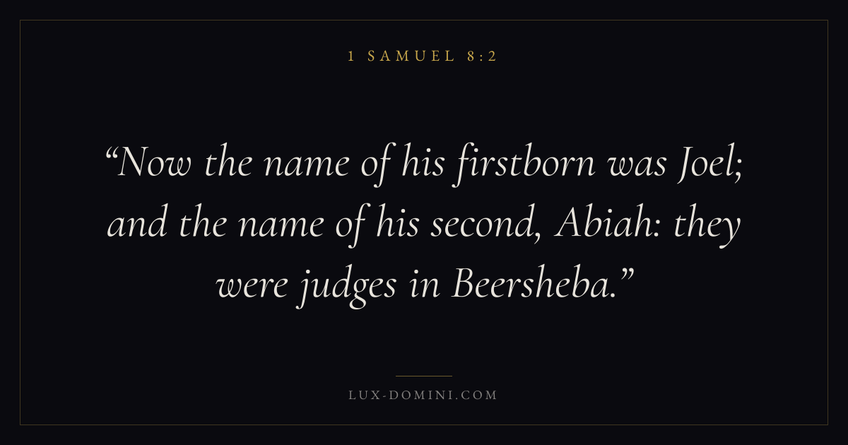 Now the name of his firstborn was Joel; and the name of his second, Abiah: they were judges in Beersheba.