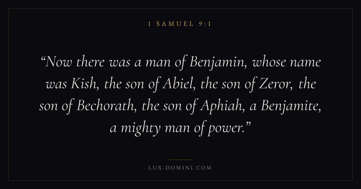 Now there was a man of Benjamin, whose name was Kish, the son of Abiel, the son of Zeror, the son of Bechorath, the son of Aphiah, a Benjamite, a mighty man of power.